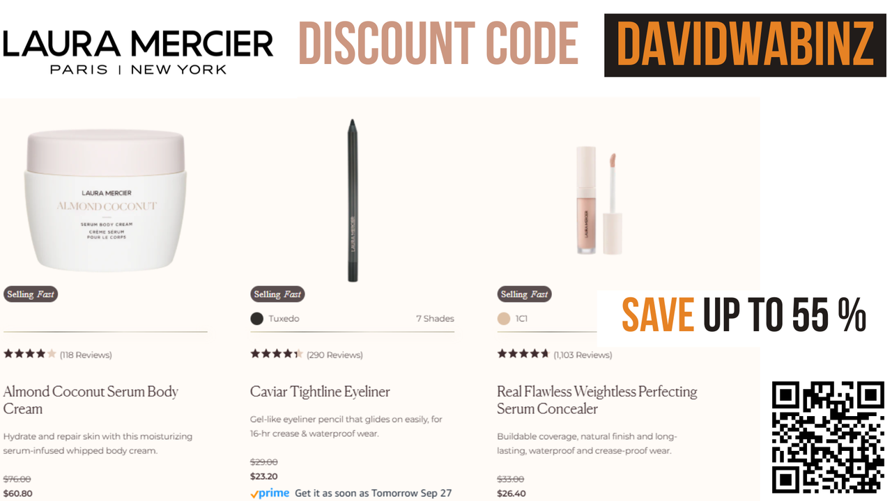 Luxury, beauty, and instant savings are just a click away. Apply the Laura Mercier Promo Code DAVIDWABINZ now to claim 15% OFF — these bestsellers are flying off the shelves! 💄✨