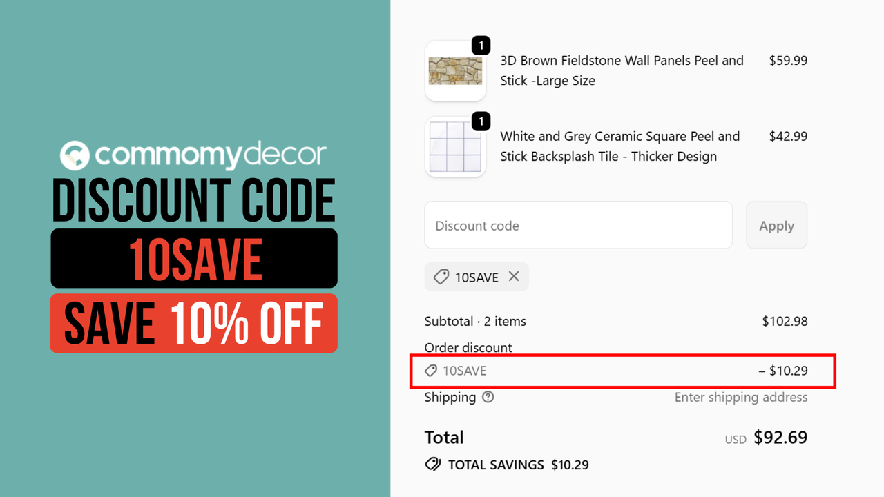 Step 3: Enter Commomy Code 10SAVE at checkout
